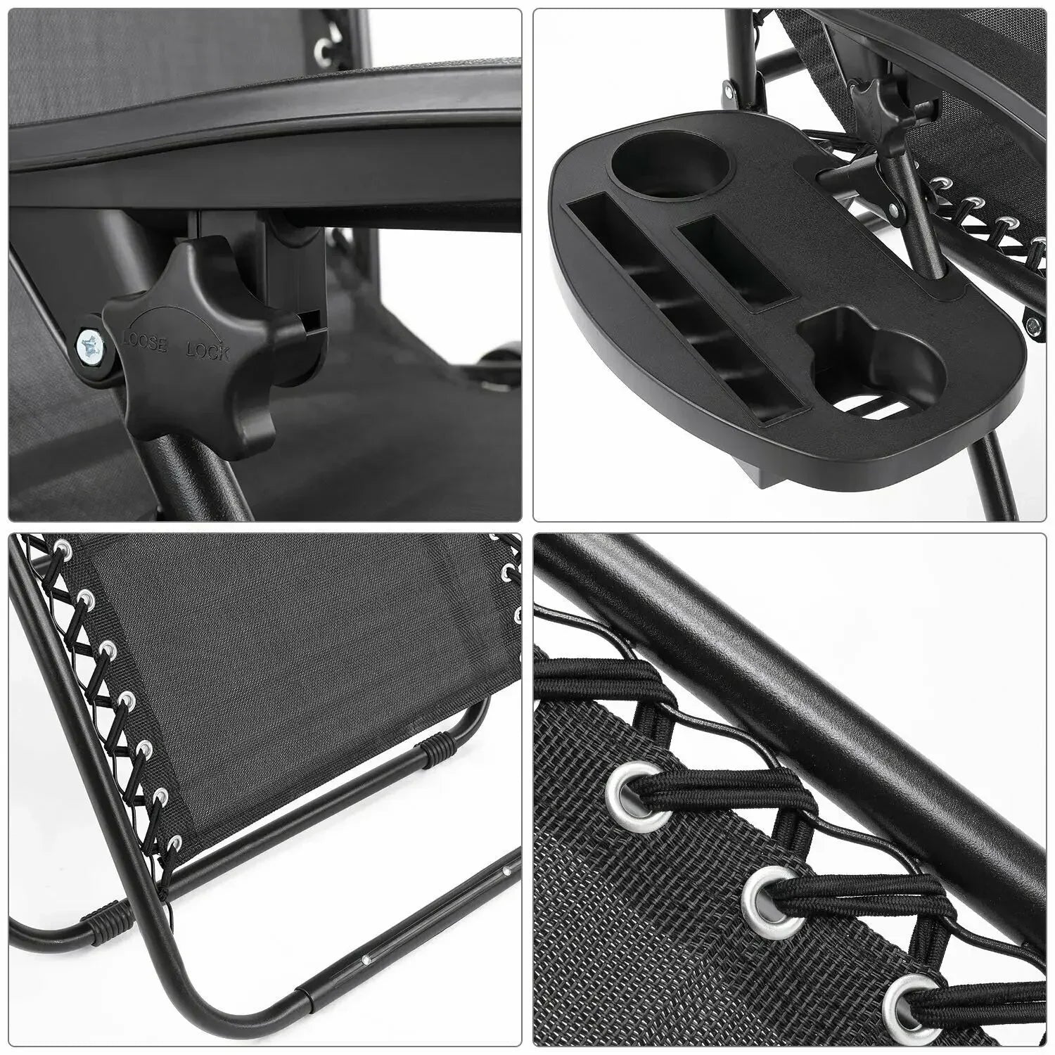 2Pcs Outdoor Foldable Chair, Zero Gravity Chair with Armrest, Cup Holder, Folding Chair Camping Lounge Patio Lawn Recliner