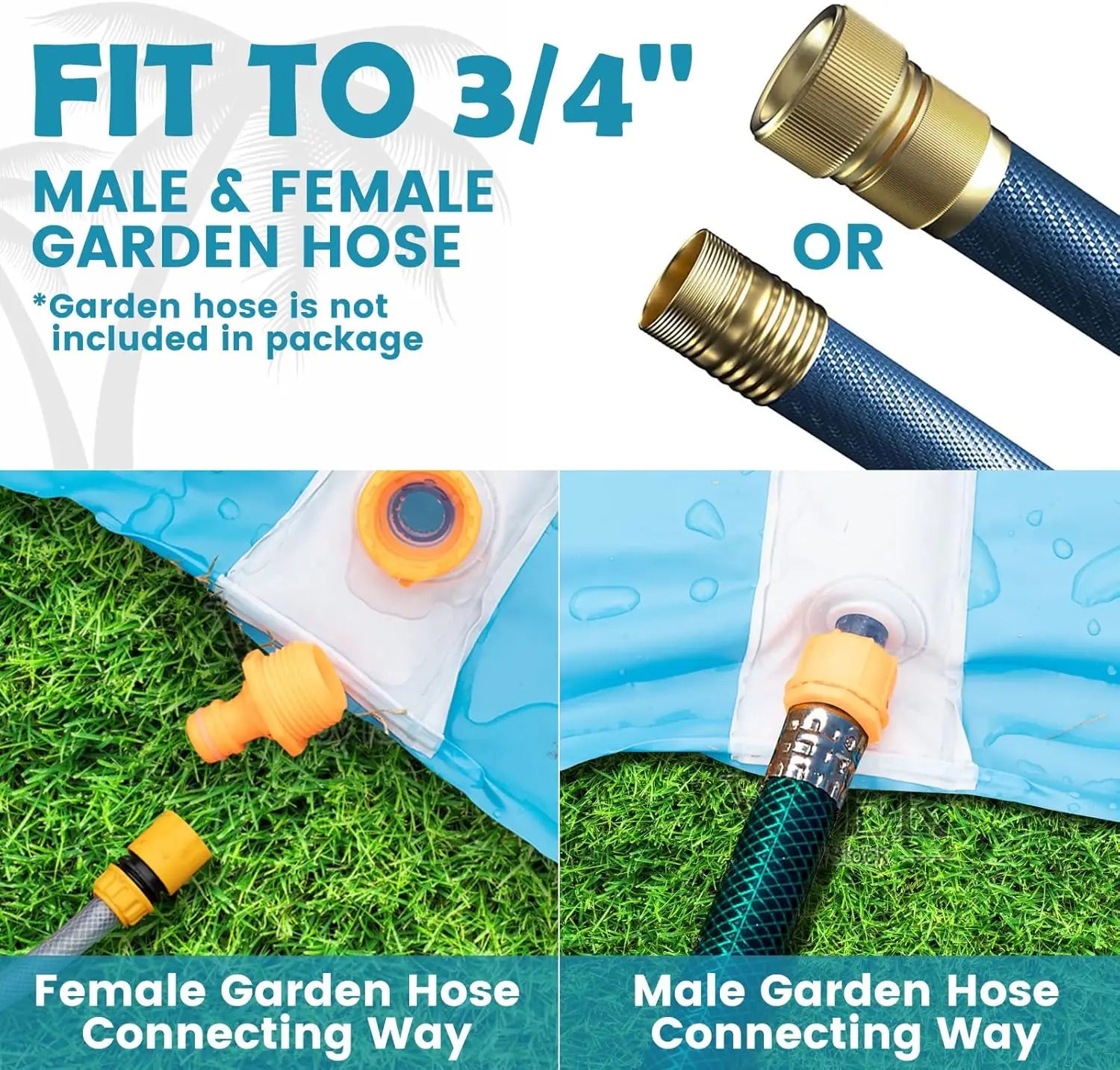 【EASY SETUP】 Setting up this lawn water slide is quick and easy. Simply lay it out on a flat surface, attach a garden hose, and turn on the water. Within minutes, children can be sliding and splashing in their own backyard. Warm tip: It is recommended to use a female garden hose, the adaptability will be higher and no leakage will occur.