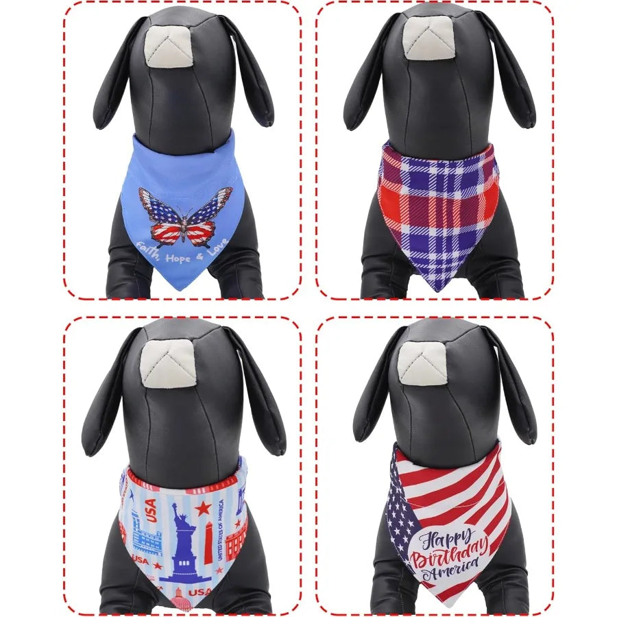 4 Pack 4th of July Dog Bandas Slide on Collars Aan Flag Reversible Scarf for Small Medium Dogs Patriotic Bibs Slip Through Coll