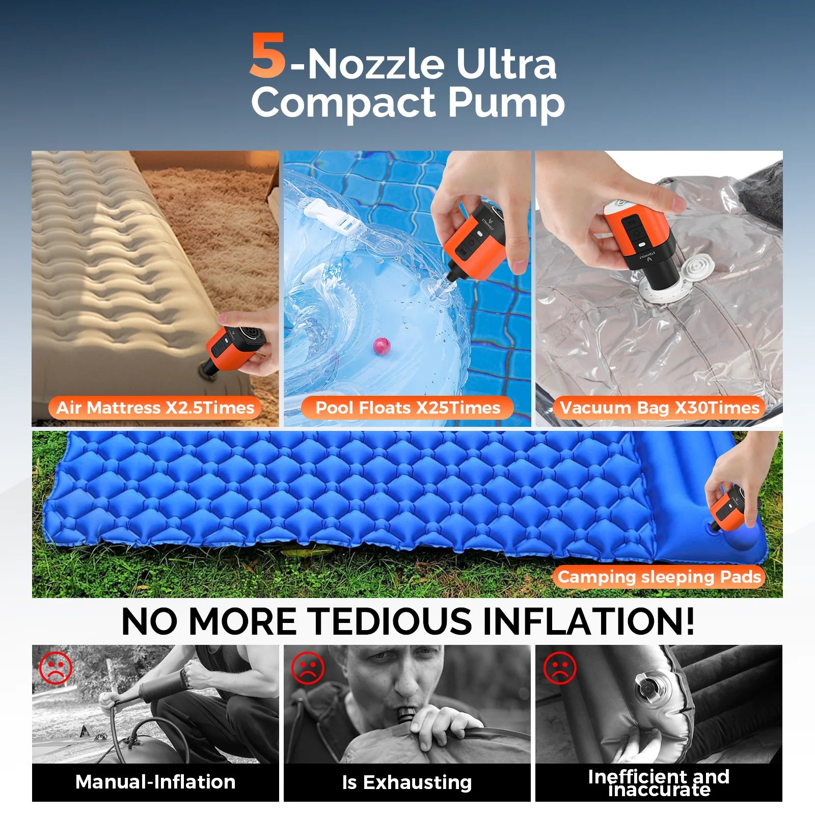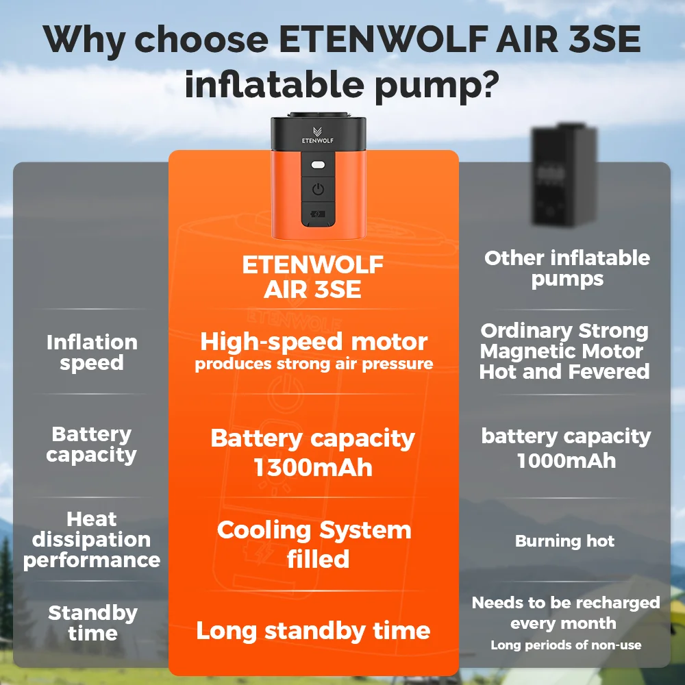 ETENWOLF AIR 3SE Electric Air Pump 2600mAh Camping Light Outdoor Pump for Air Mattress Pool Floats Sleeping Pads