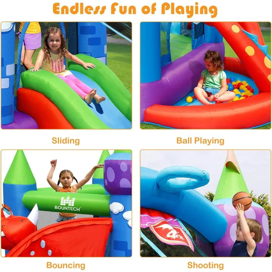 Inflatable Bounce House, Dragon Bouncy House for Kids Indoor Outdoor Party w/Jump Area, Basketball Rim, Toddler Jump Castle Boun