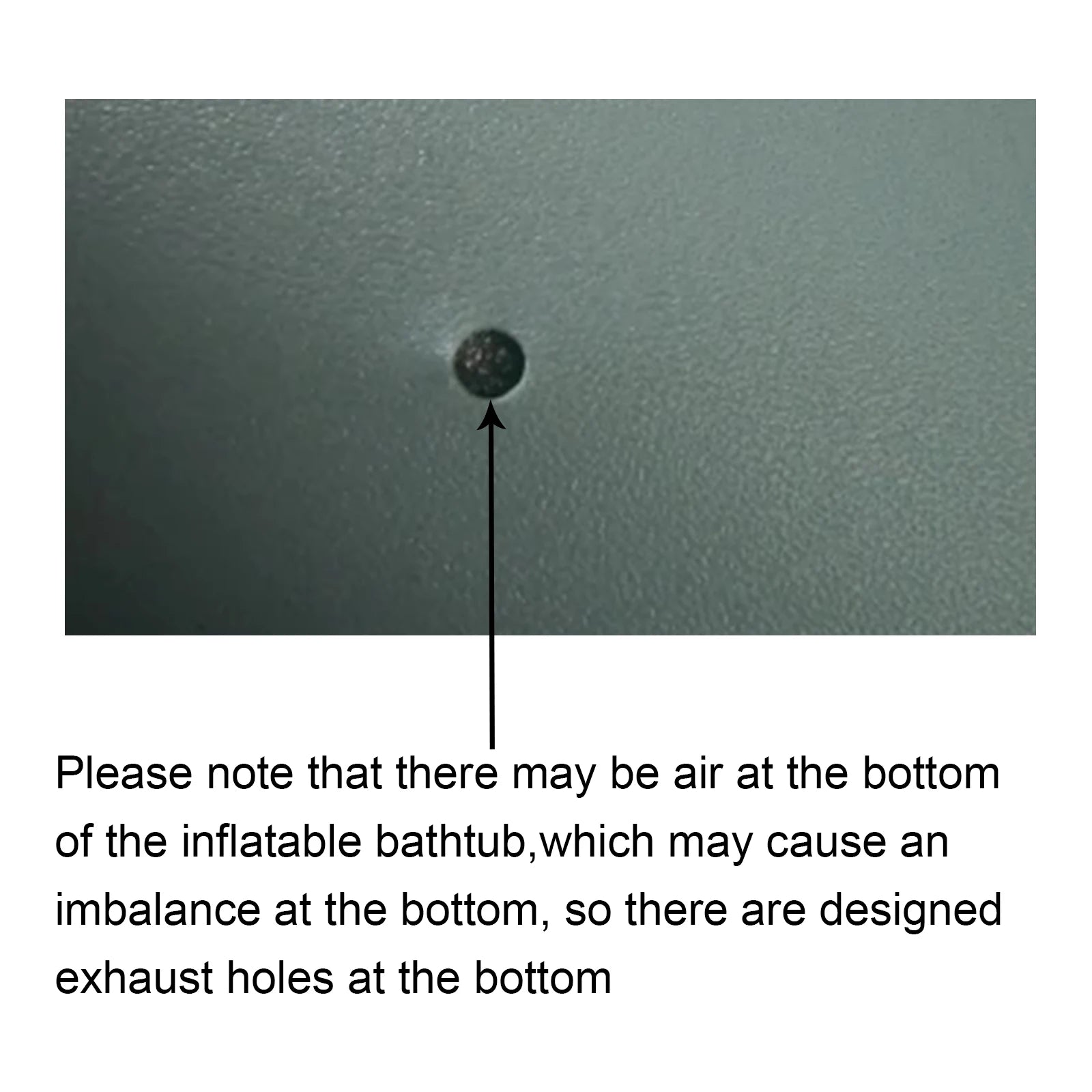 Please note that there may be air at the bottom of the inflatable bathtub, which may cause an imbalance at the bottom, so there are designed exhaust holes at the bottom