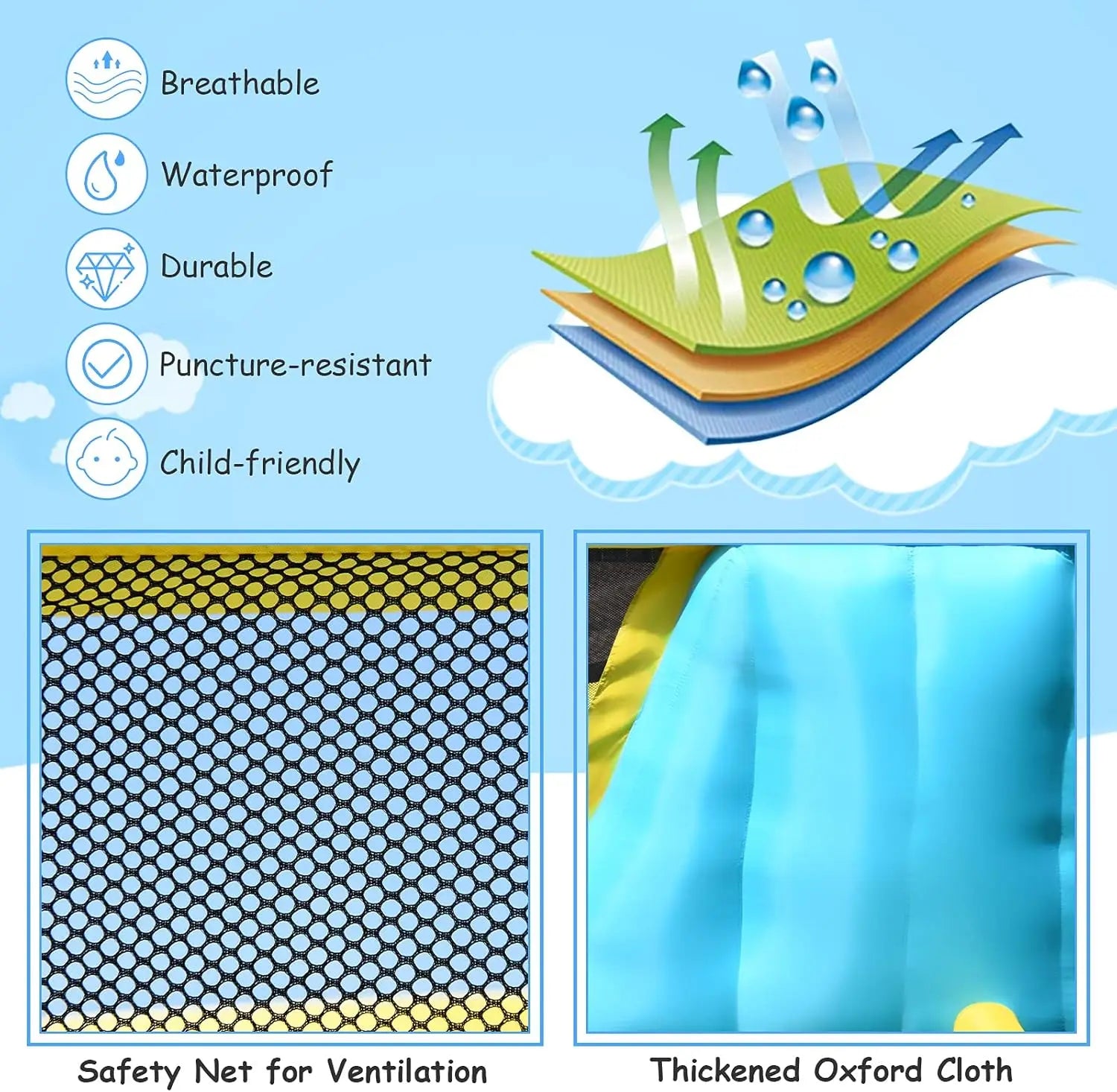 🏰【Durable & Heavy-duty Material】Made of extra thick PVC-coated 420D + 840D Oxford fabric (ASTM and CPSIA certified) with reinforced stitching, our inflatable water slide for kids provides maximum strength for years of happy bouncing.