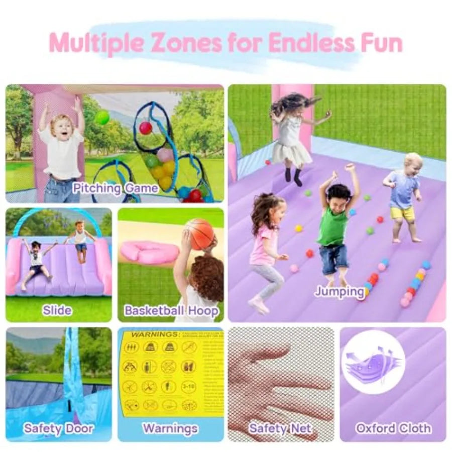 Large Bounce House for Big 14.8 x 14.5 FT Inflatable Bouncer Jumper Slide with 650W Blower Basketball Hoop Throw Ball Game Ball