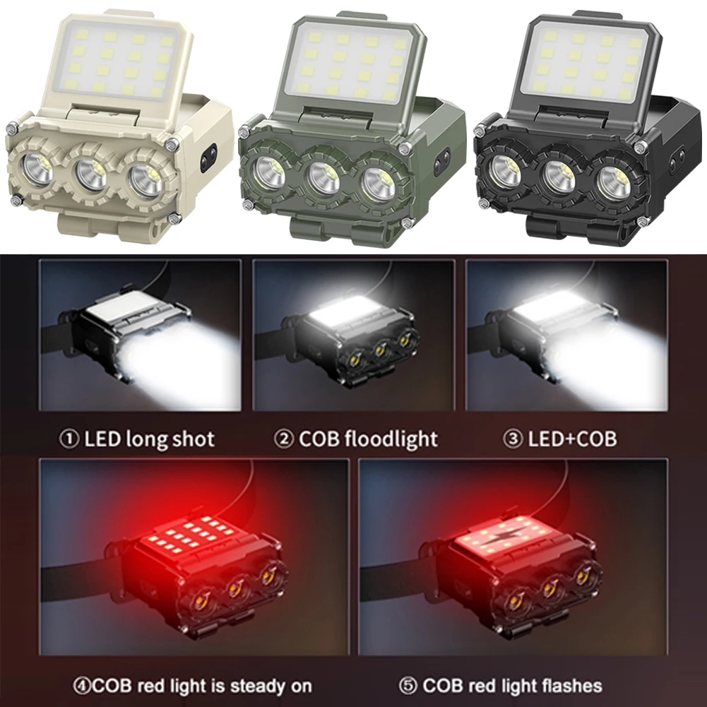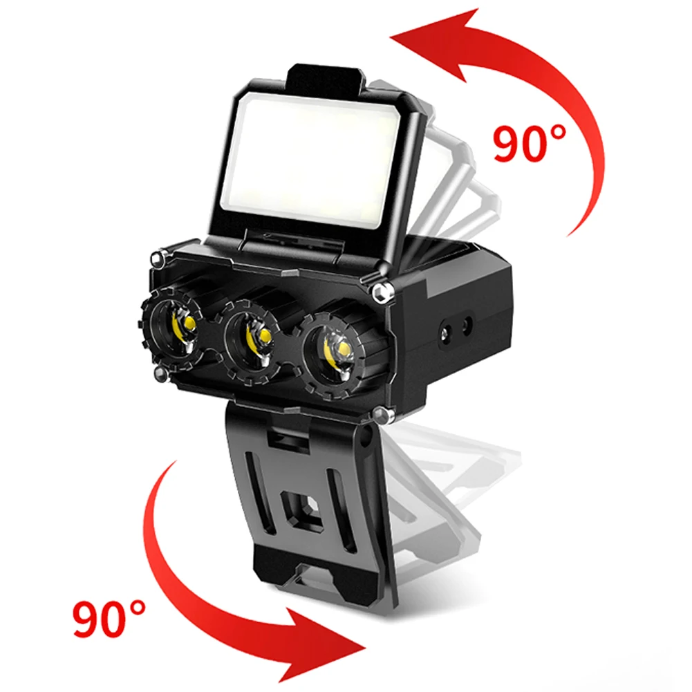 LED Induction Headlamp 7 Modes Type-C USB Rechargeable Mini Cap Clip Light Waterproof Head Flashlight 700Lumens 1100Mah Battery for Camping Fishing Emergency