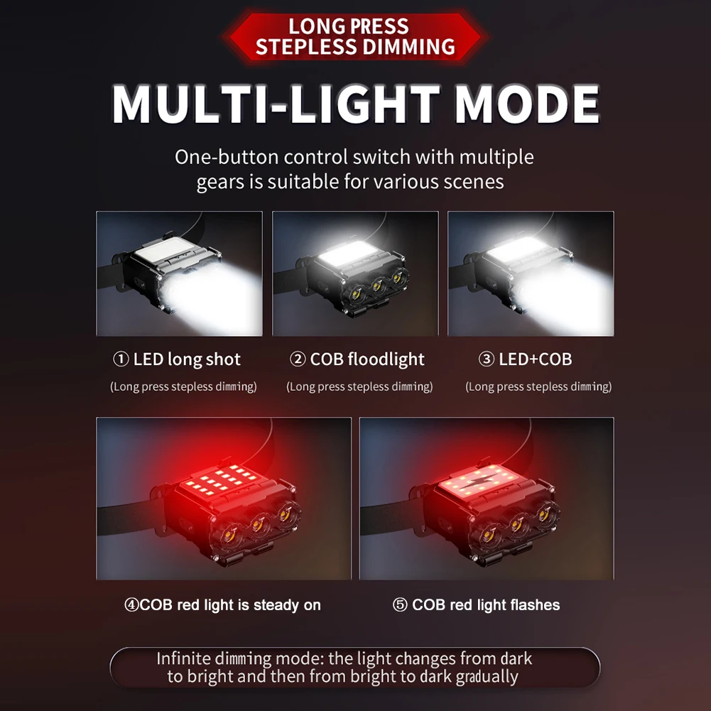 4. Battery Level Indicator: Stay informed about your battery status with the head flashlight's built-in power display. This feature allows you to monitor the battery life, ensuring you're never caught without light during critical moments, enhancing safety and reliability.