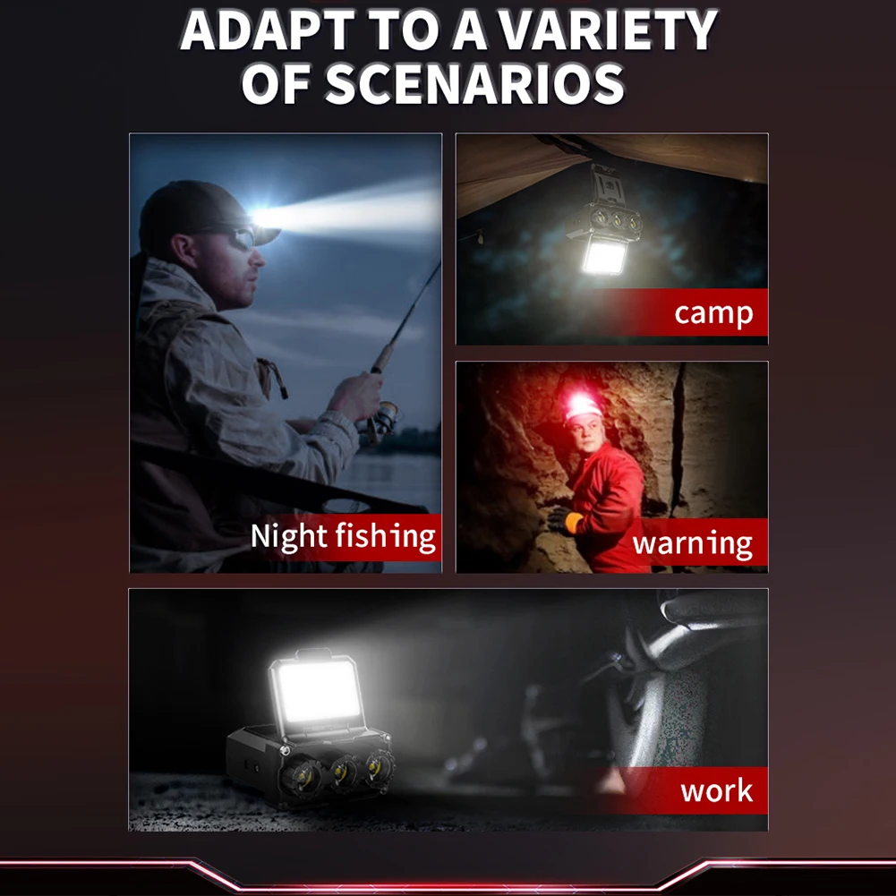 1. Hands-Free Gesture Sensing: The induction headlamp features an innovative gesture sensor, allowing for hands-free operation. Simply wave your hand in front of the lamp to turn it on or off, providing convenience and efficiency during activities that require both hands.
