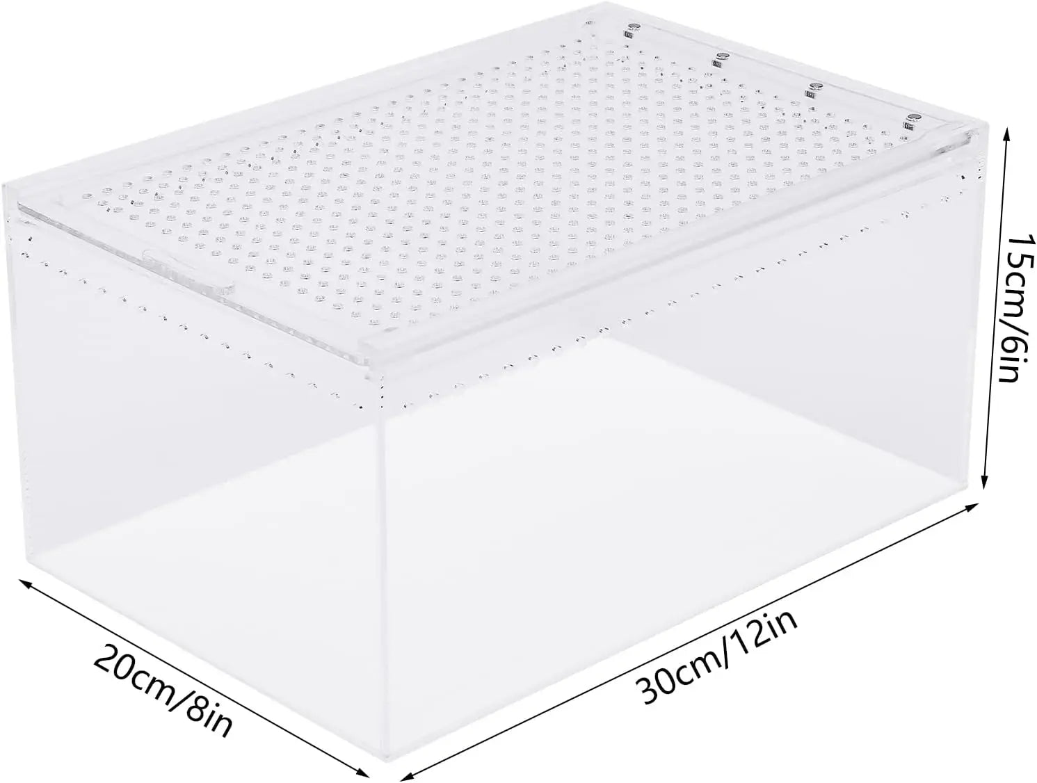Magnetic Acrylic Large Enclosure 2.5 Gallon, 12x8x6 Inch Reptile Breeding Box Terrarium Cage Clear Acrylic Reptile Feeding Box
