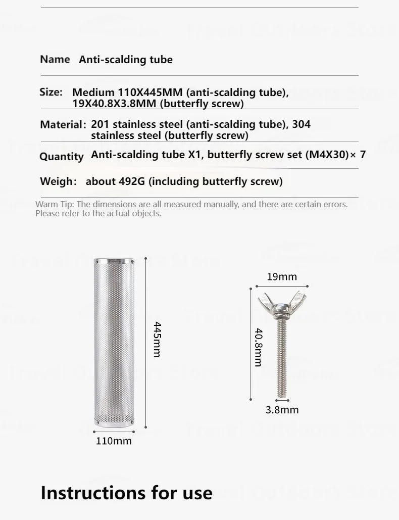 Dimensions: 11x11x44.5cm (Anti-Scalding Tube) / 1.9x4.08x0.38cm (Butterfly Screw)