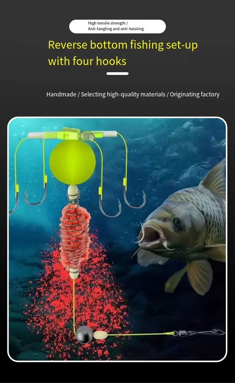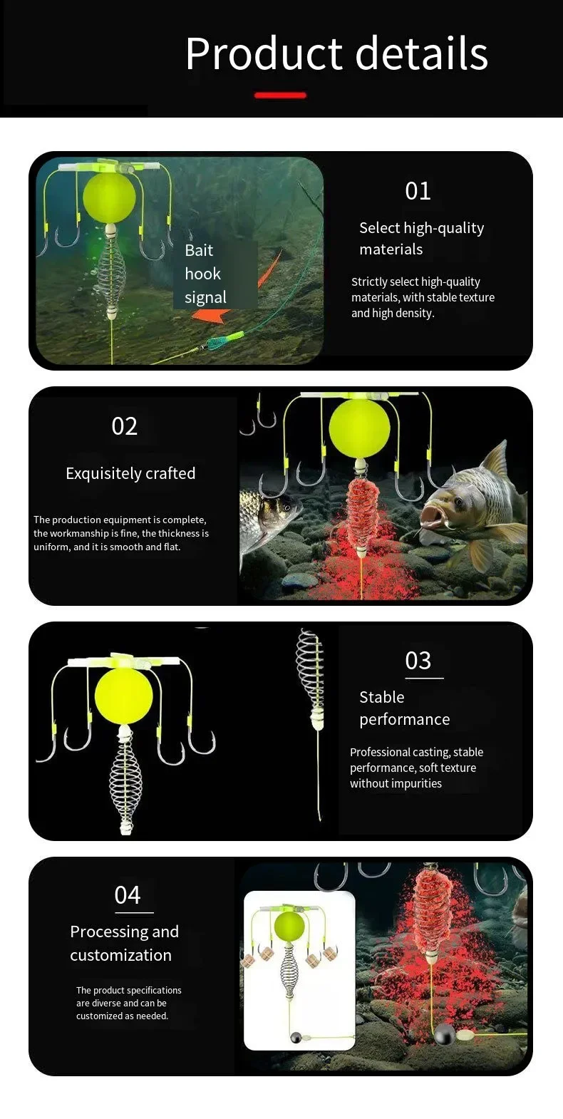 New 1Pcs String Hook Fishing Bait Cage Four Hook Carbon Steel Line Group Feeder Sinker Float Sharp Fishing Spring Bait Cage Sea