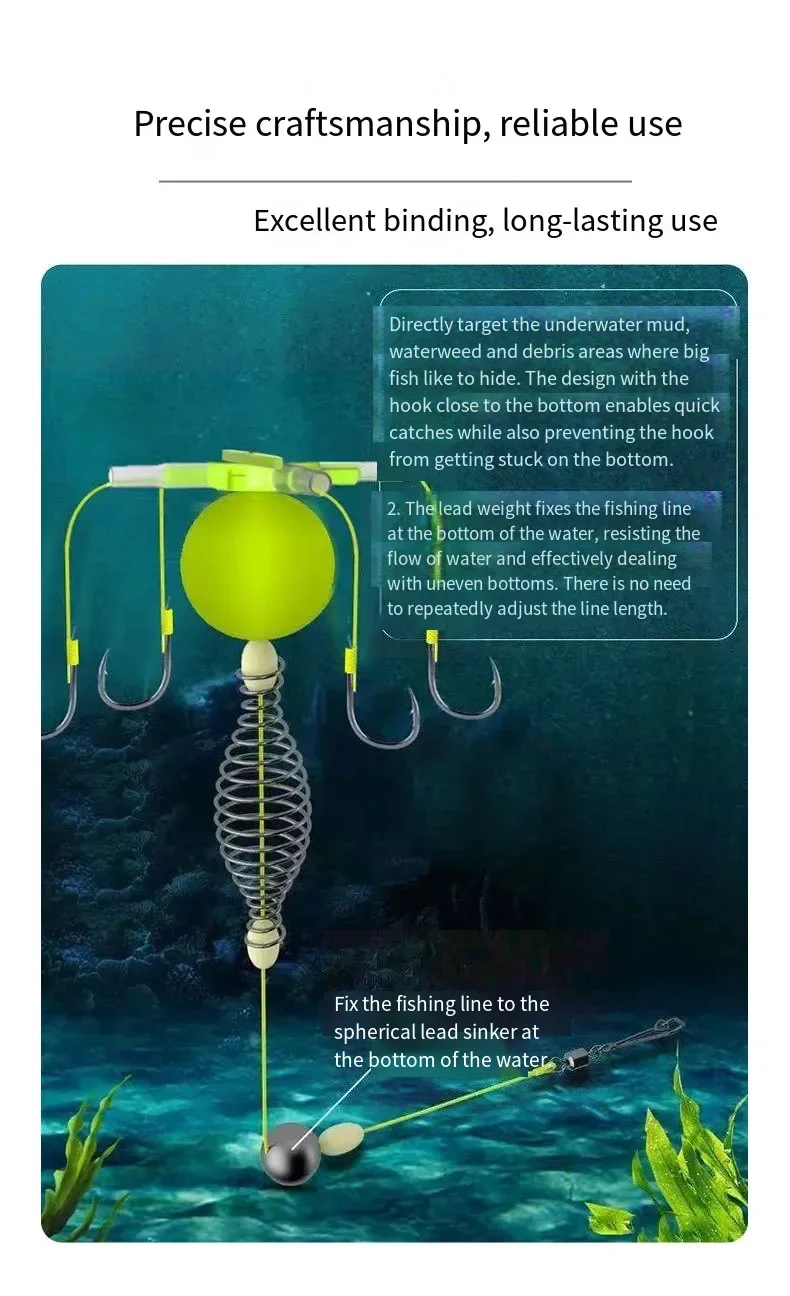1. Efficient design: The anti-bottom small explosive hook and the anti-bottom fish hook uses a unique design, which can greatly increase the success rate of fishing. Through the design of anti-bottom, it can effectively prevent the hook from sliding into the bottom of the water, and can improve the accuracy and success rate of fishing.