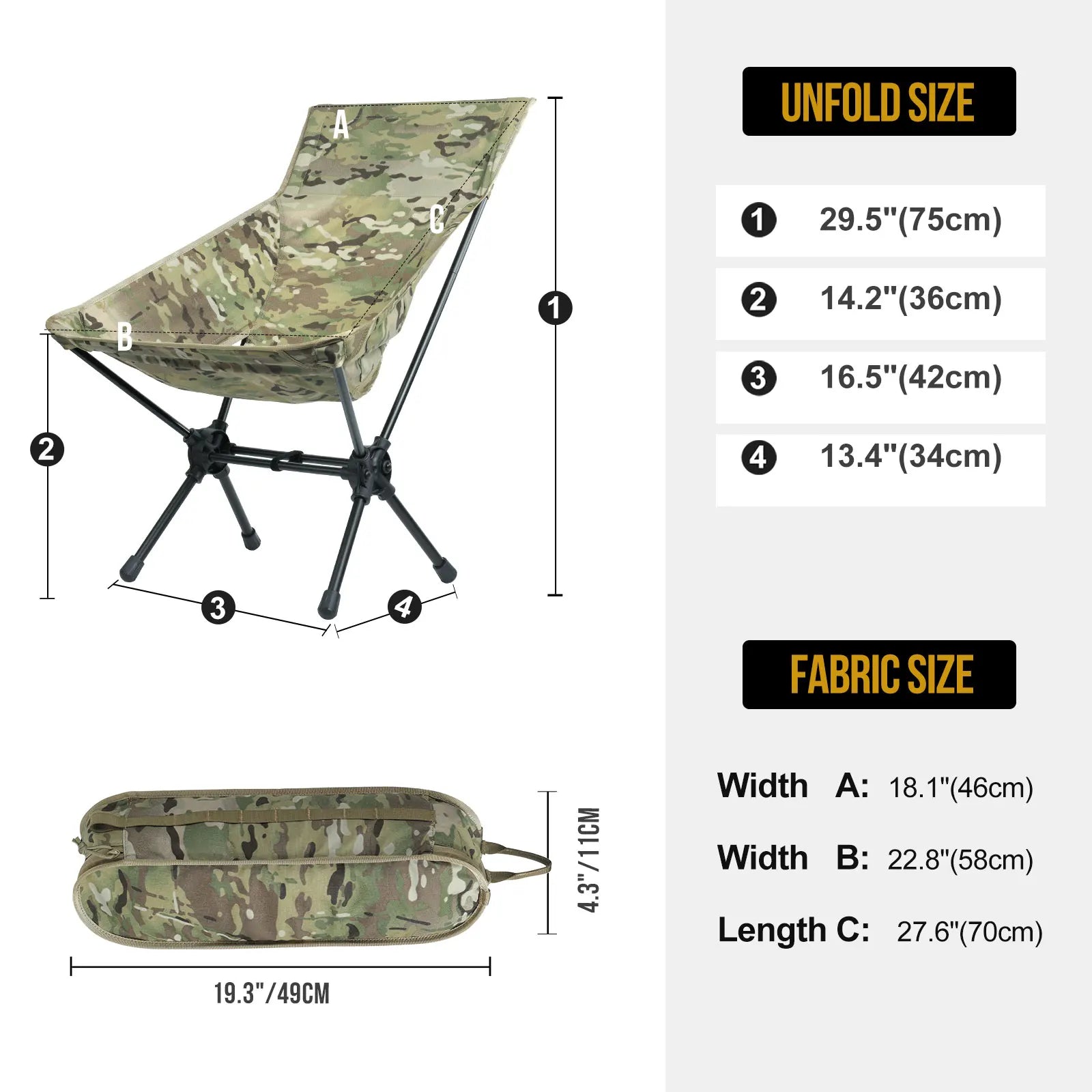 OneTigris Portable Camping Chairs Outdoor High Back Chair For Fishing Trekking BBQ Parties Gardening Indoor Use