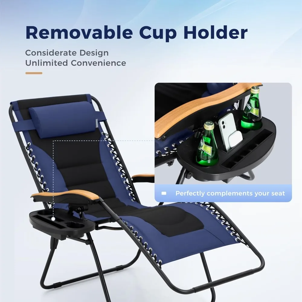 oversized xxl padded zero gravity lawn chair anti gravity lounge chair foldable recliner 30" wide seat outdoor camp chair for p