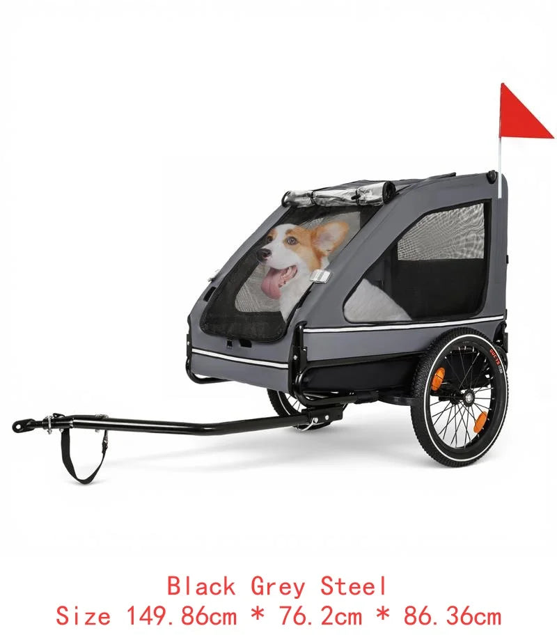 Product Name: Pet Bike Trailer Dog Cart for Bicycle,Suitable for Small and Medium Pets, Easy Folding Cart Frame, Quick Release Wheel, Non-Slip Floor, Internal Leash, Black+Grey