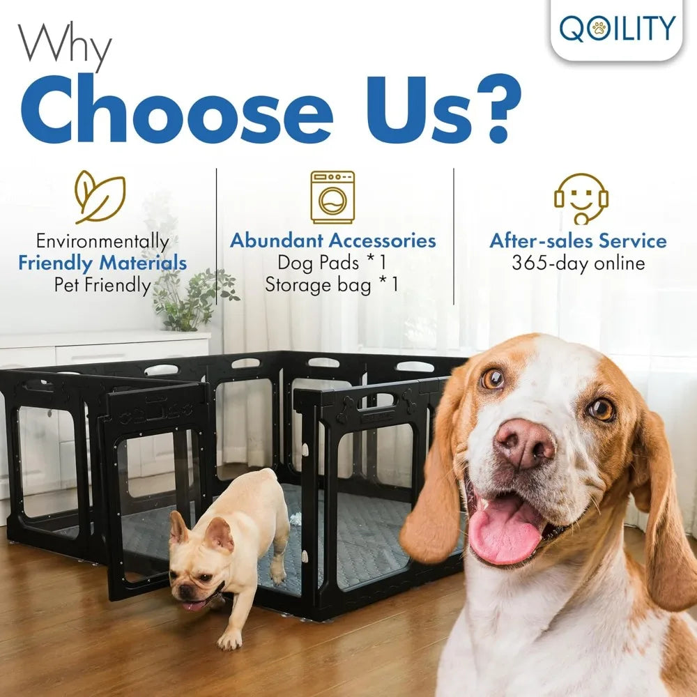 Playpen with Door - Height 24 Inch, 12 Panels - Reduces Indoor Puppy/Small Dog Anxiety, Black