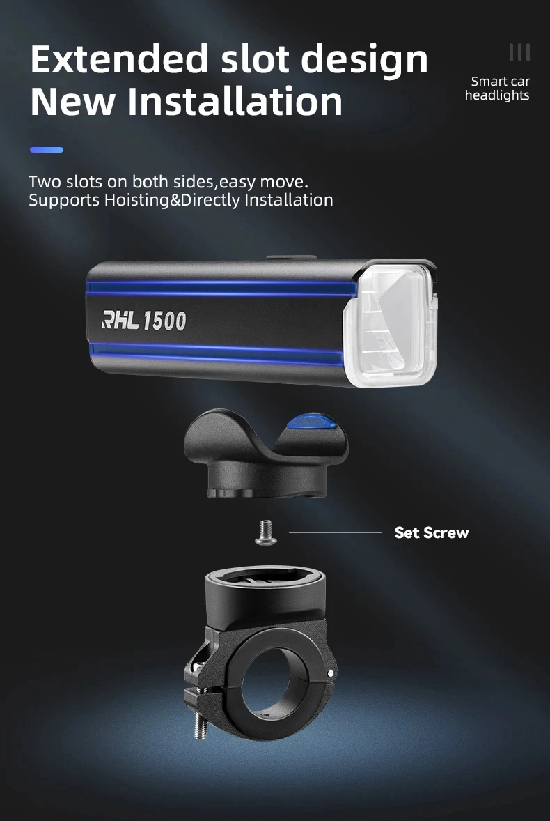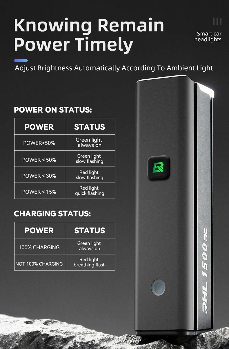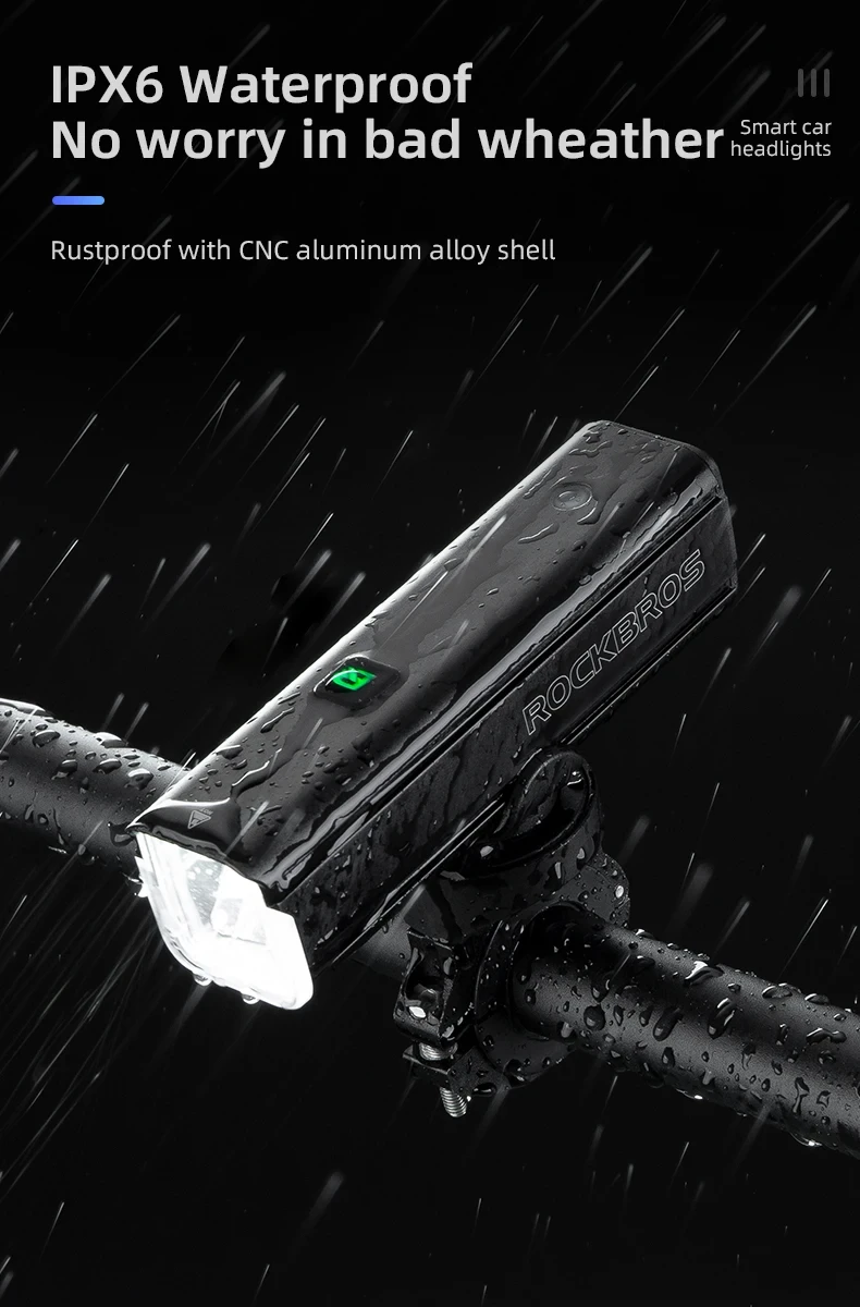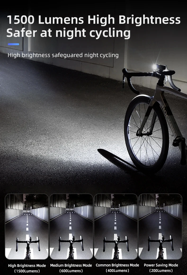 ROCKBROS Bicycle Light 1500LM 5000mAh Type-C Charging Bike Light Smart IPX6 Aluminum Alloy Light Front Lamp Cycling Headlight