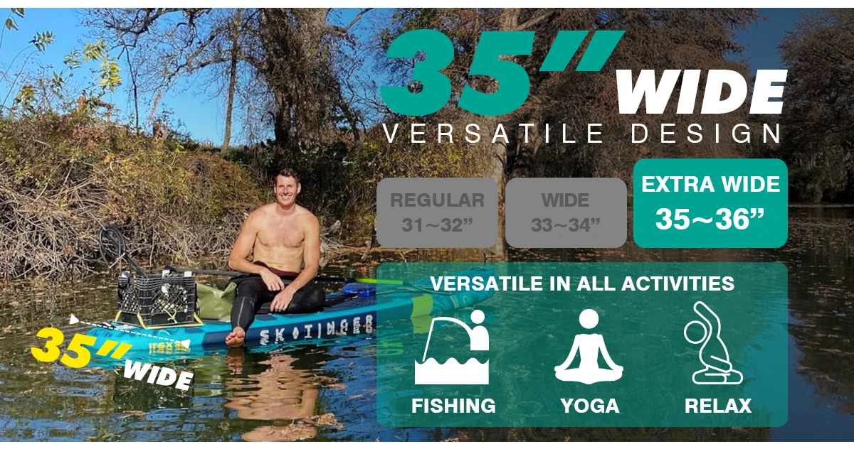 At 11'6'' x 35'' x 6'', this paddle board provides ample space for adults to enjoy a stable and comfortable paddling experience.