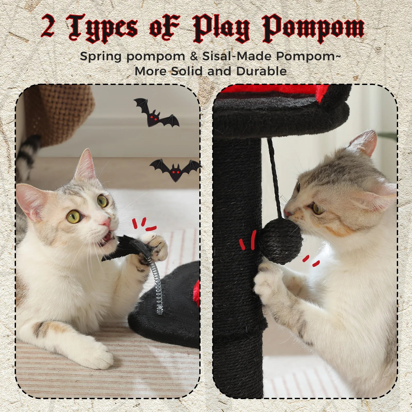 Stable Black Gothic Cat Scratching Post with Super Thick Scratching Post,Removable Spiderweb Pattern Cat Bed,Spring Ball,Cat Toy