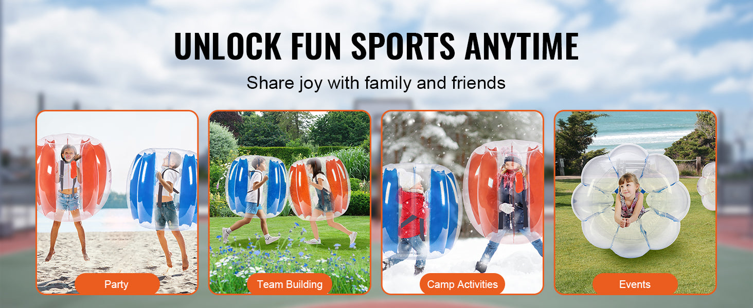 Unleash the ultimate fun with SucceBuy 2PCS inflatable bumper balls. Crafted from 0.3mm thick, explosion-proof PVC, our 3FT outer diameter bumper balls are designed for ultimate durability and safety. Get ready to bump into excitement and create unforgettable moments with VEVOR bubble soccer balls!