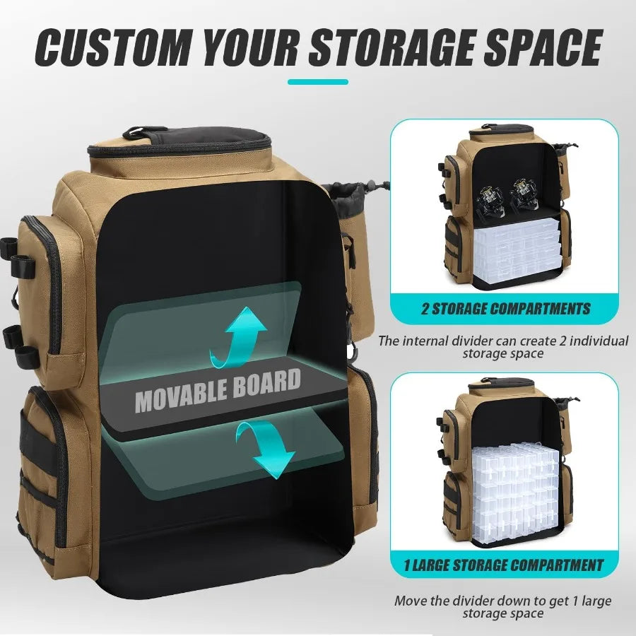 Tactical Fishing Backpack with Tackle Boxes Rod Holders Bottle Holder 50 L Large Durable Fishing Bag Store Gear and Equipment 9