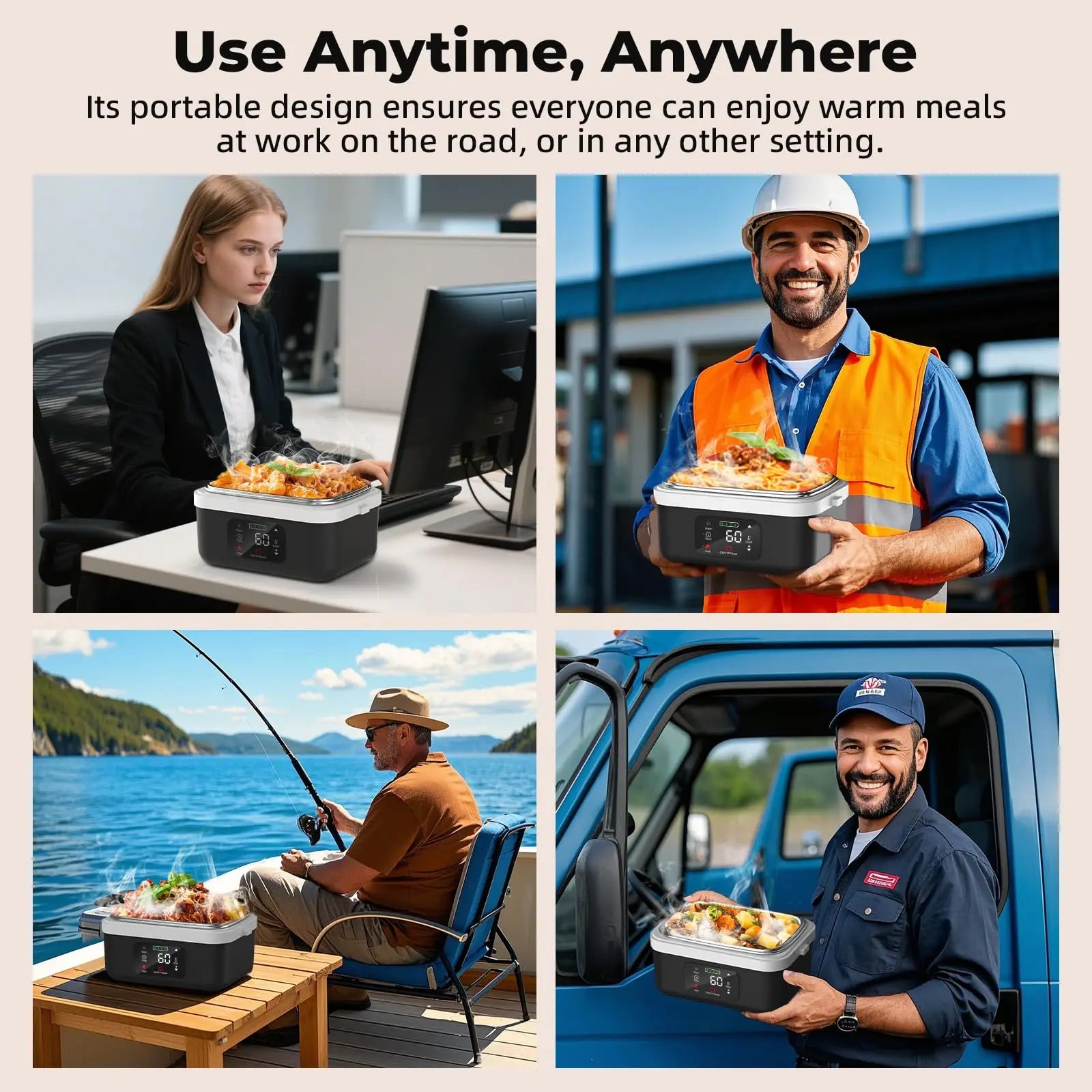 【Easy to Clean, Safe to Use】 This men's battery-powered heated lunch box features a removable 304 stainless steel container and ABS sealing lid for easy cleaning. Made from BPA-free, odor-free materials, this portable lunch box heater ensures safe and hygienic meals every time, with easy maintenance and convenience.